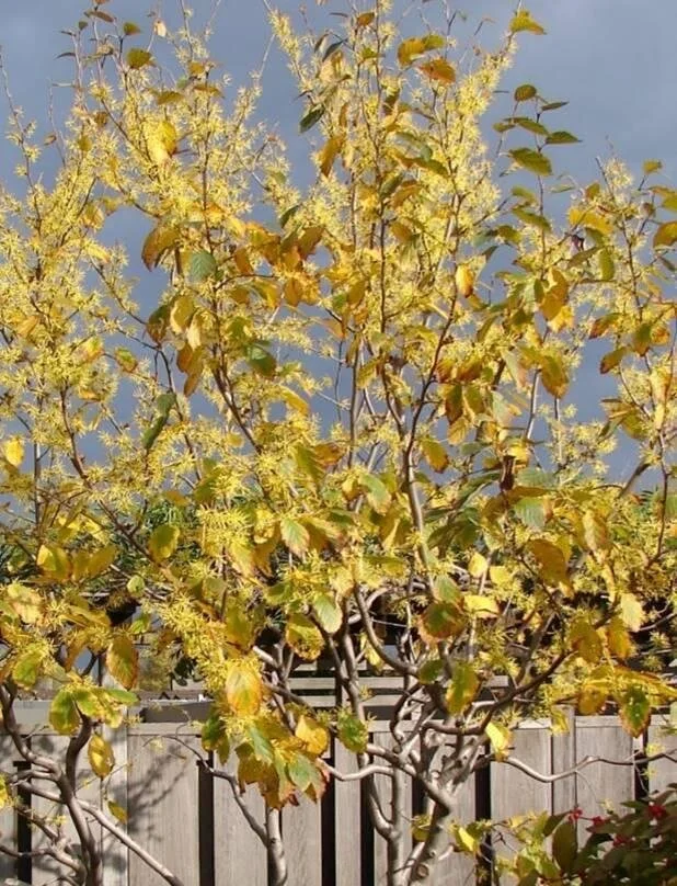 Witch Hazels have been used medicinally for centuries and a mild astringent tonic is made from the bark and roots. Native Americans used this to treat colds, eye infections, dress wounds and to treat common colds. The name Witch Hazel is derived from the old English word ‘wych’ meaning ‘pliable or to bend’ and most think it refers to the flexible forked branches that have long been used as dowsing rods to locate underground water for wells, or “water witching”.