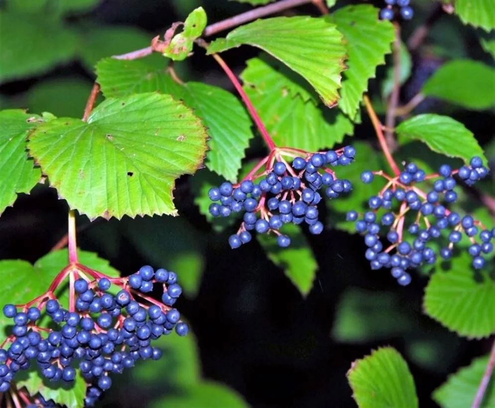 Arrow-wood Viburnum flaunts showy clusters of dark blue fruit in September that are relished by hungry songbirds. (Photo by Betsy Washington)