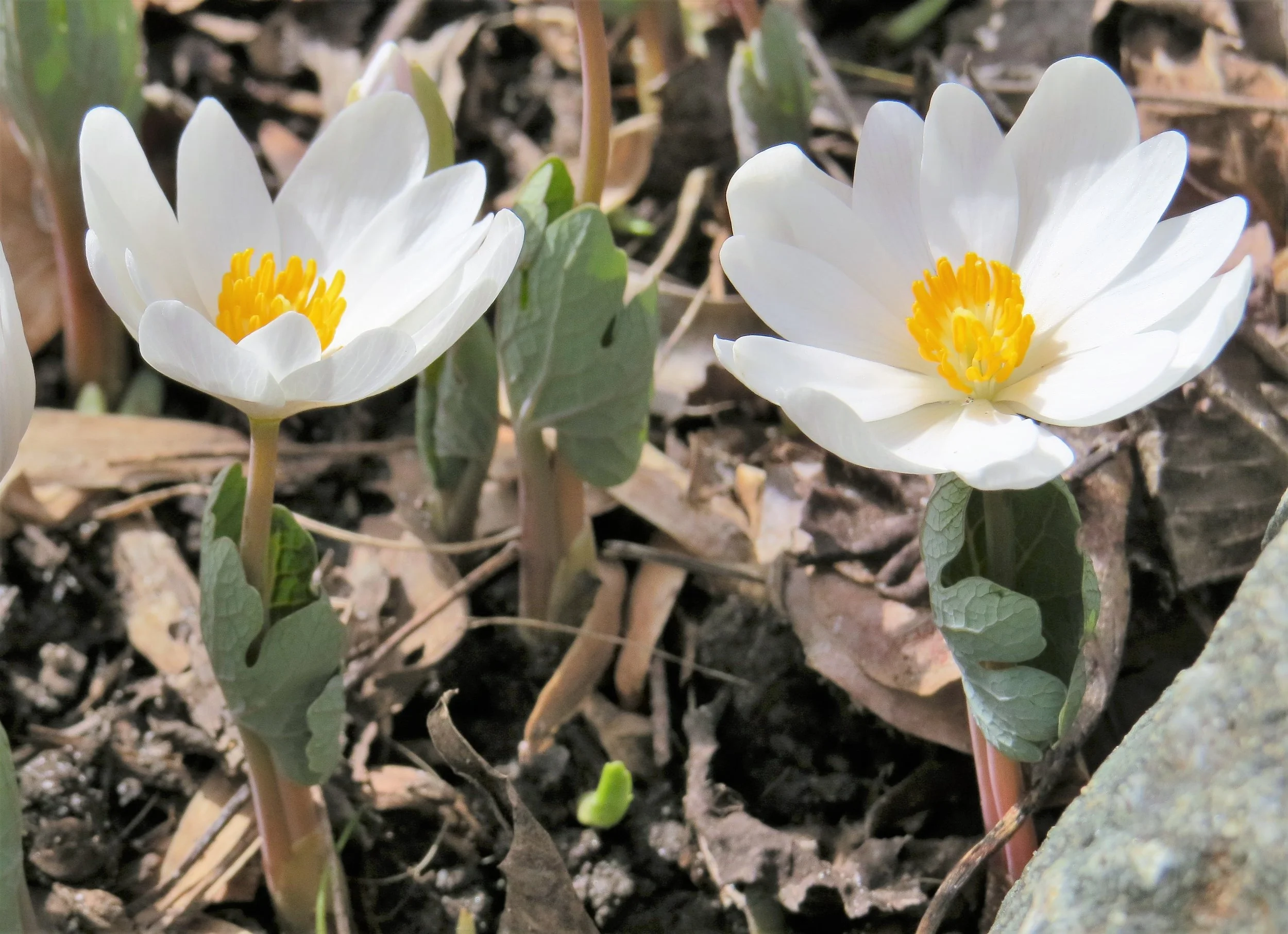 1. Exquisite early flowers of Bloodroot with clasping leaves