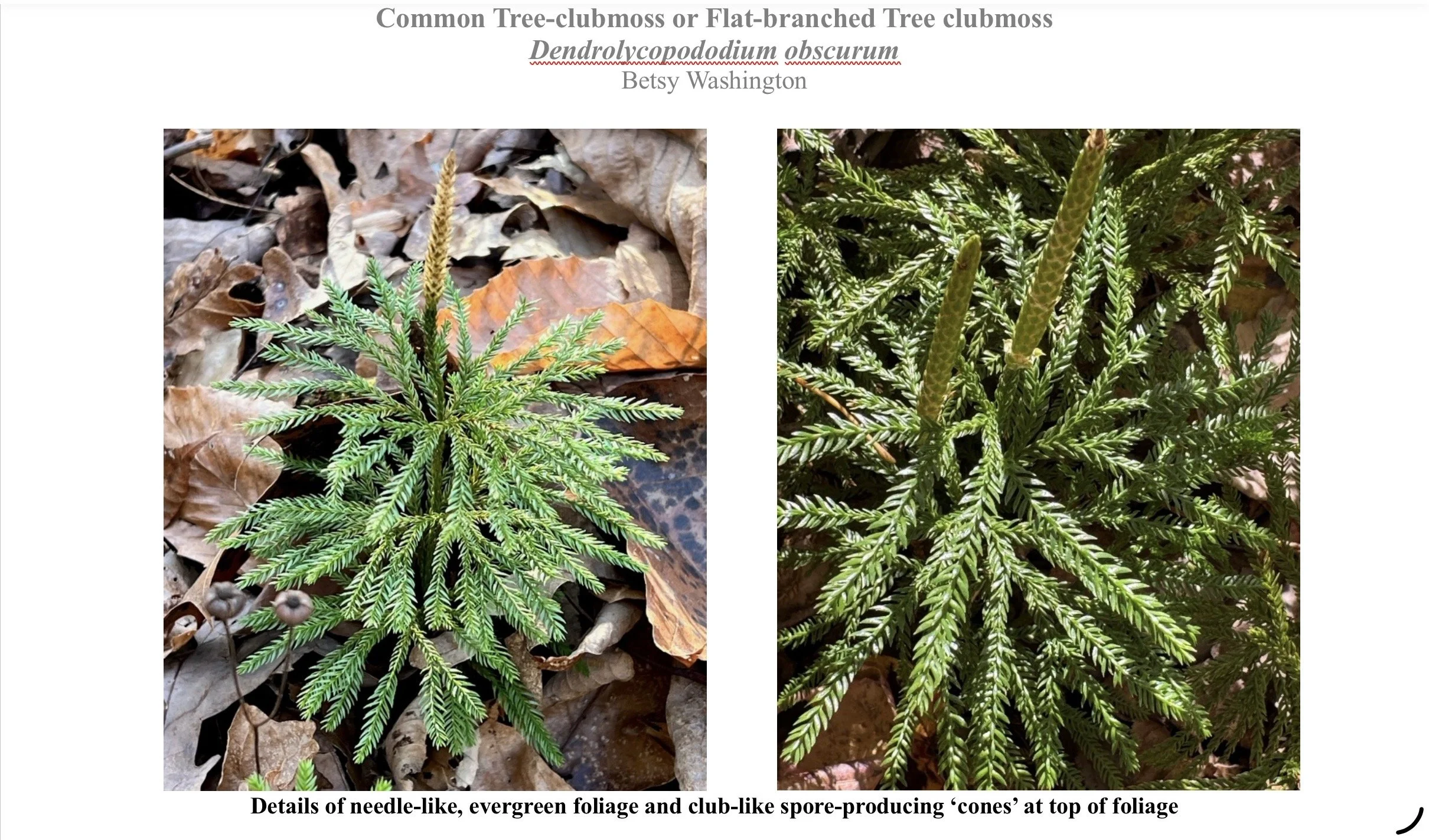 Clubmosses are green all year and easily seen on winter walks. Be sure to join us on our Annual New Year’s Day afternoon walk at Hickory Hollow NAP to observe Common Tree-clubmoss and another common clubmoss, Running Cedar or Ground Pine, and get ready for some pyrotechnical displays along the way. A bonus is marveling at the precocious flowers of our earliest blooming wildflower, Skunk Cabbage.